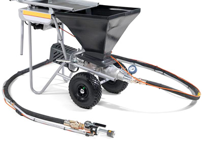 - 液料中含有懸浮分布的顆粒物,顆粒物的粒徑較大,有明顯的顆粒質感,此種液料用常規的噴槍無法噴涂,必須選擇專用的含顆粒液料噴涂設備。含顆粒液料噴涂設備有特殊的機械設計:主機液料泵具備大排量抽吸的功能,能抽送比重較大的含固體顆粒的液料;主機液料泵具備耐磨的功能;噴槍具備高霧化的性能并有良好的顆粒通過性;具備特殊的管路和特殊的輔助連接裝置。